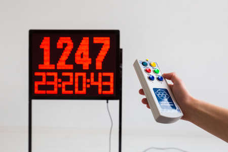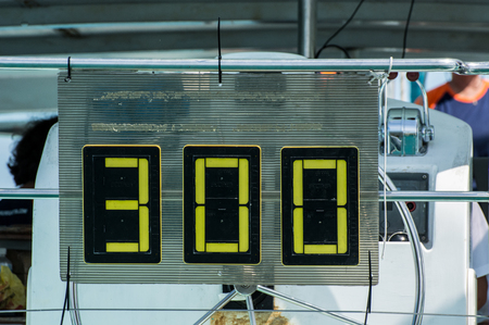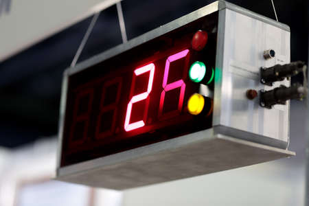 Sports electronic board on start. Countdown. Electronic stop watch, Digital scoreboard. The concept of time is over, the beginning. Start