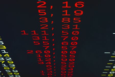 Closeup shot of raises in stock values of corporates in the stock market displayed in from top v