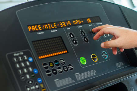 Control panel on modern treadmill in close up
