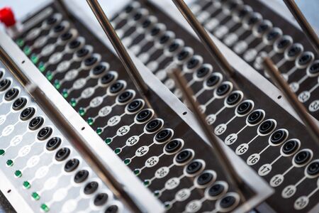 Old telephone switchboard with plastic buttons. Retro, dirty keys