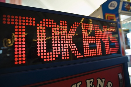Detail Macro of an old vintage video game with text Push start button, with option to select one or two players