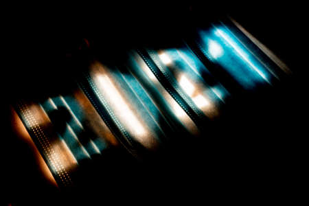 Behind the scenes text on Lightbox or Cinema Light box. Movie board light box on studio stair and light Snoot tripod on colors gradiant Background. Represent behind the scenes team is working on.