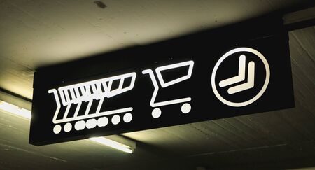illuminated signs that indicate the direction of caddies in a basement in switzerland