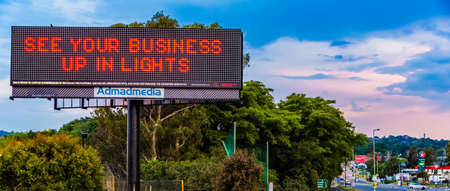 Johannesburg, South Africa - November 14, 2017: Large LED roadside billboard displaying a message for businesses