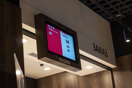 Close up of a upcoming buses schedule on digital screen on a bus stop in London, UK.