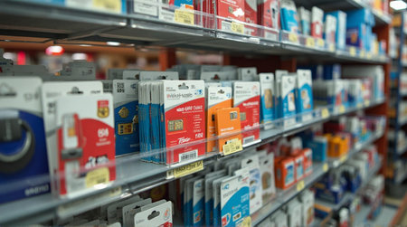 Mobile SIM cards on display shelves in a retail store create connectivity solutions for customers