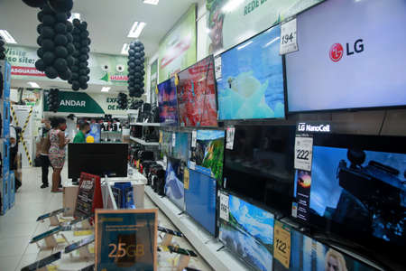 salvador, bahia, brazil - november 26, 2021:customers seen in the appliance department of a supermarket in the city of Salvador.