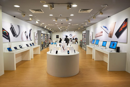 HONG KONG - CIRCA SEPTEMBER, 2016: inside of Apple store. Apple Store is a chain of retail stores owned and operated by Apple Inc., dealing with computers and consumer electronics.