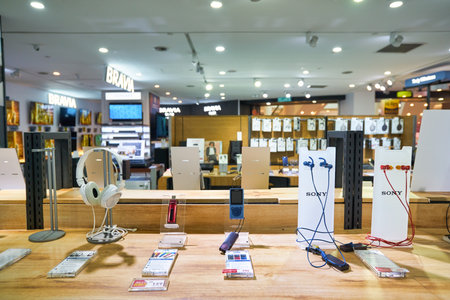KUALA LUMPUR, MALAYSIA - CIRCA JANUARY, 2020: interior shot of Sony store in Suria KLCC shopping mall in Kuala Lumpur.