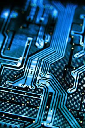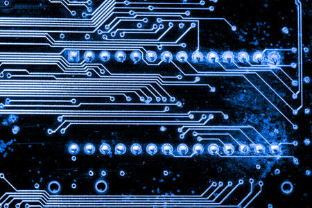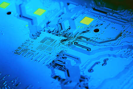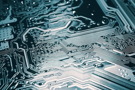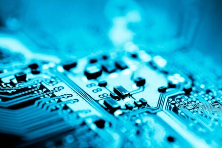 Electronic circuit, computer circuit board blue, computer technology. Circuit board futuristic technology processing. Abstract technology microelectronics concept background. macro shot, shallow focus