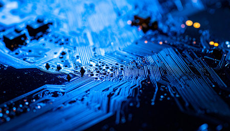 A macro view into the heart of modern technology. Intricate pathways of a blue-lit circuit board glow, representing the complex flow of data and the nervous system of the digital world.