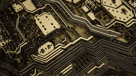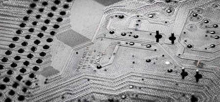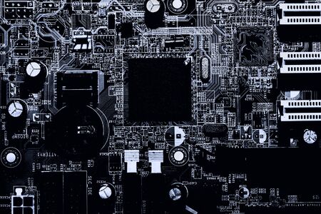 Electronic circuit board abstract background. computer hardware. motherboard close up. modern technologies. micro elements of computer with connections and traces. Intelligent technology
