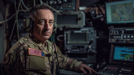Army computer scientist employing AI technology in military planning and decision making processes. Expert uses artificial intelligence to enhance armed forces operational capabilities, camera A