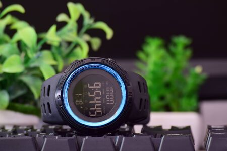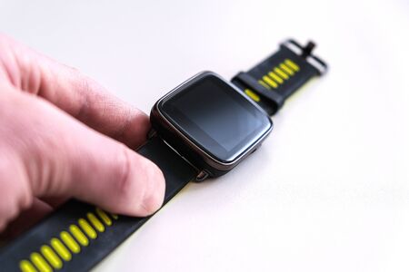 The technology close-ups in use. Sport and excercise in daily life,the digital smart watch.