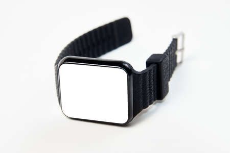 Wireless Smart Watch isolated on white background. Digital wrist watch with white display with copy space, close-up