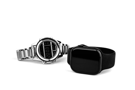 Sleek modern smartwatch showcase elegant tech accessory on white background with ample copy space