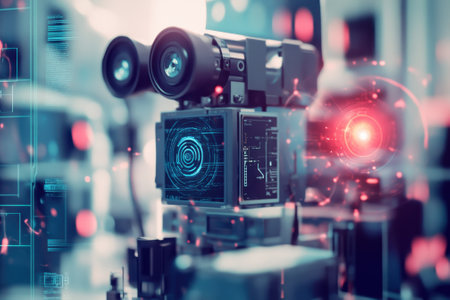 Innovative camera technology records real-time data with digital enhancements in a modern setting.