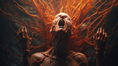 A person fighting through various mental health conditions expressing deep emotions. Concept Mental health struggles, Emotional expression, Inner turmoil, Vulnerability, Personal growth