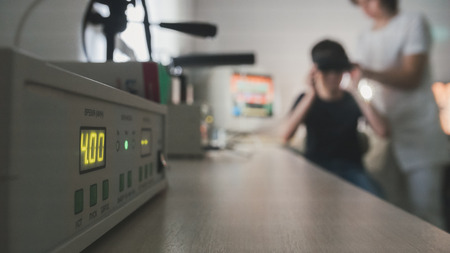Encephalogramm euipment with electrodes. At the hospital. Electroencephalogram EEG
