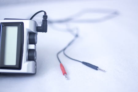 Medical Electrotherapy Device on a Windowsill with Connecting Wires.