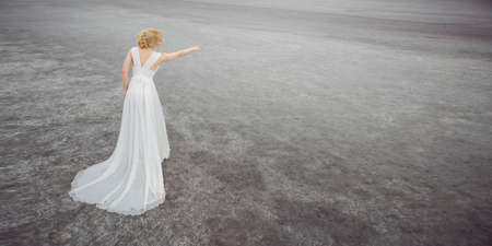 beautiful asian woman in white wedding dress and earrings.