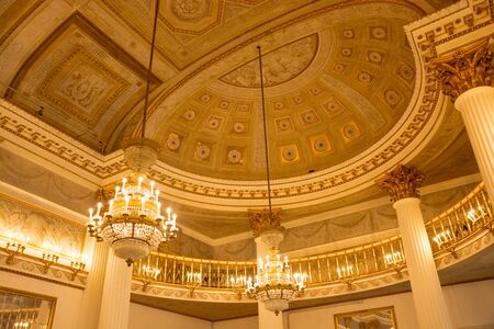 Luxury crystal chandelier in the interior of an old palace