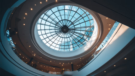 Captivating view of a glass dome skylight in a modern shopping center, highlighting intricate design and elegance. A perfect blend of architecture and light.