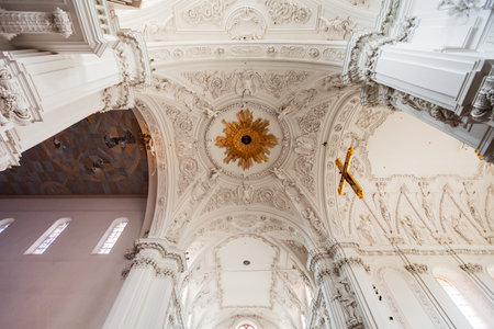 Wurzburg, Germany - July 11, 2021: Wurzburg Cathedral or Wurzburger Dom interior. It is a roman catholic cathedral in Wurzburg old town in Bavaria, Germany.