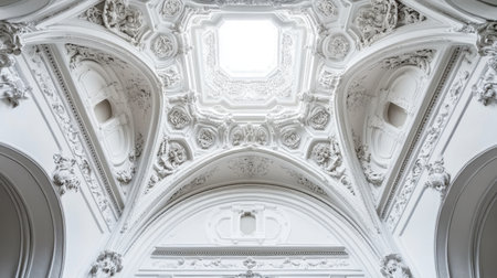 Elegant White Baroque Ceiling Architecture Interior Detailing.