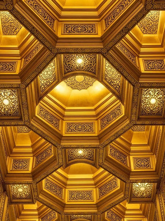 An ornate golden ceiling with intricate designs and patterns