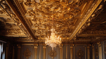 Discover the beauty of an intricately designed ceiling, featuring elaborate decorative elements and a warm color palette that enhances any interior space.