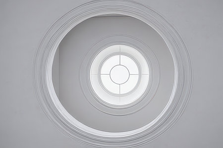 Explore the serenity of an intricately designed ceiling featuring ornate details and natural light from an octagonal skylight, creating a tranquil interior atmosphere.