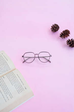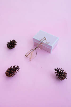 Black glasses , Minimal style layout Leave blank for the text. On a pastel pink background