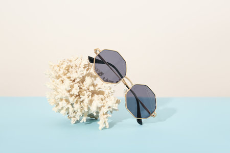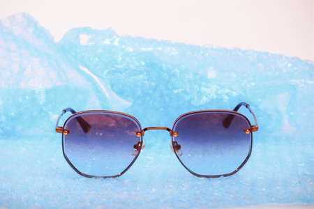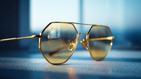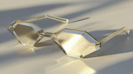 Modern geometric sunglasses with transparent frames resting on a smooth surface. These stylish accessories reflect light beautifully, embodying contemporary fashion trends.