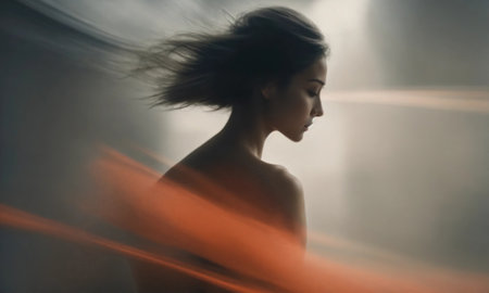 Blurry motion silhouette of a girl with long hair. ai generative.