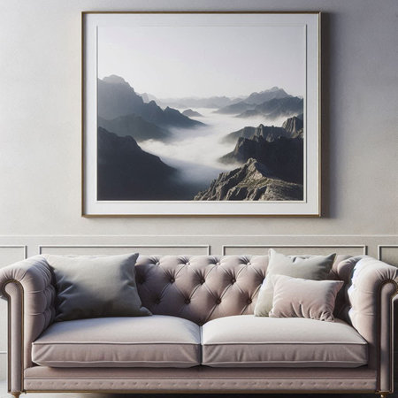 the 7x5 frame transfer mockup showcases a minimalist design, set against a misty background, emphasizing simplicity and elegance. perfect for displaying artwork, photographs, or inspirational quotes. the mockup seamlessly merges style and subtlety, creating a captivating visual impact for any space. ai generated