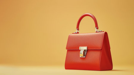 Red stylish glamorous female leather bag on pure background. Fashionable and high style expensive female bag. Sales bag fashion concept