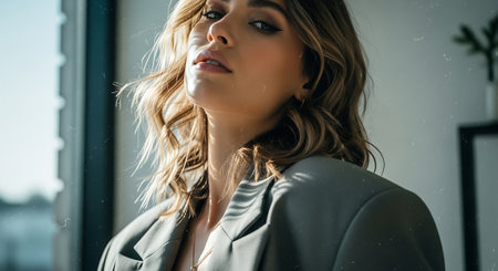 portrait of Beautiful young woman. sensual girl with make-up and curly blond Hair