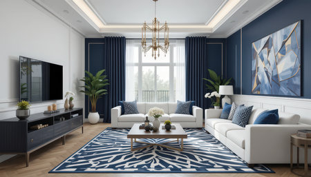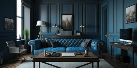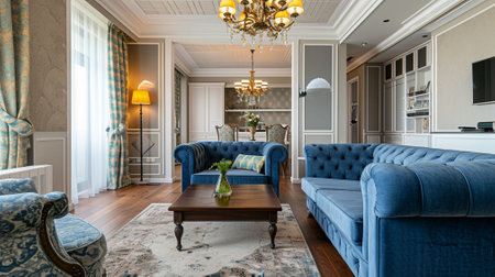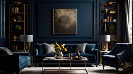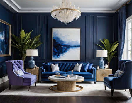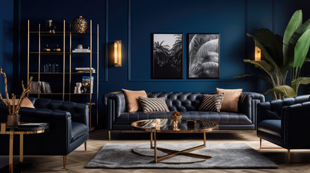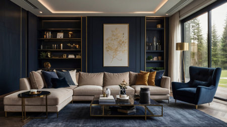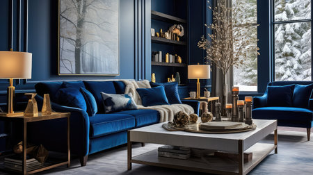Modern blue living room with trendy elegant and