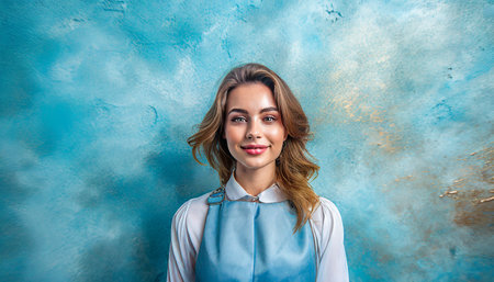 Young woman portrait posing against a clean background with copyspace for text