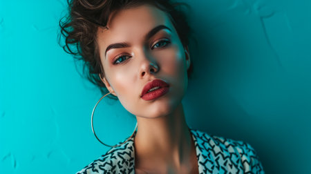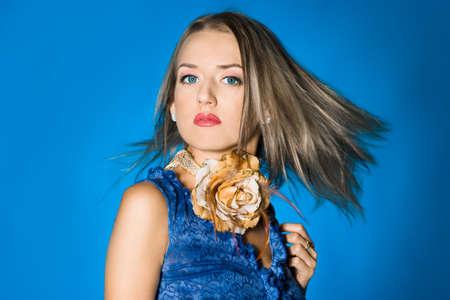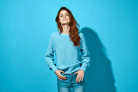 beautiful woman fashion posing blue background Lifestyle