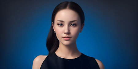 Portrait of a beautiful young woman in a black dress on a blue background