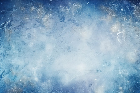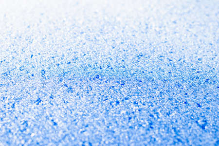 Texture of sparkling first cold ice. Blue snowy backdrop. Winter background for design. Abstraction in nature.