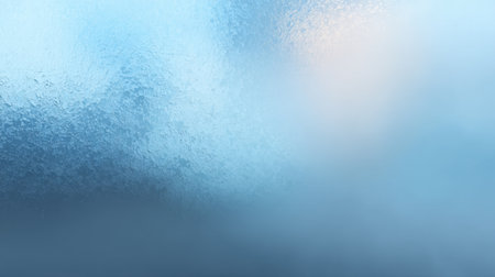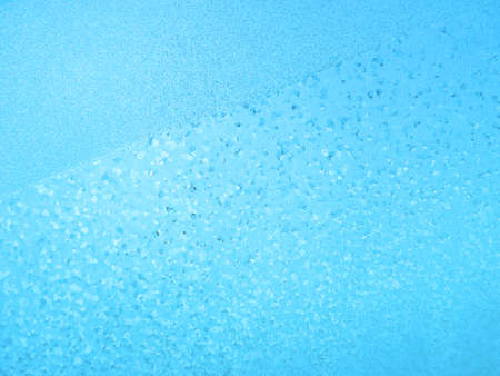 Frozen and misted window glass. Abstract winter teal background with ice crystals. light cyan wallpaper. Tinted natural backdrop. Misty or translucent surface