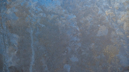 Photo of blue toned frozen concrete tile surface covered in ice texture.