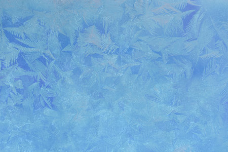 Ice patterns frost on the window. clean blue background. beautiful texture of nature.