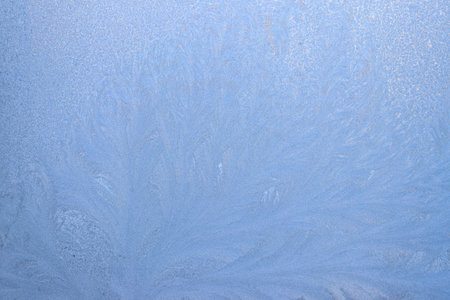Winter ice pattern on the frozen window. Texture, background for inserting text. New Year theme. Winter. Cold.