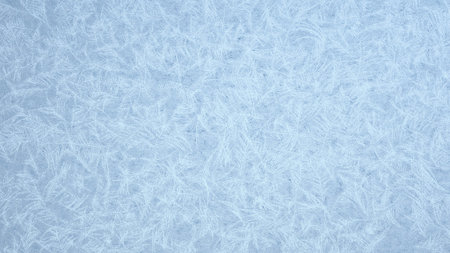 Beautiful natural background or texture of frozen transparent glass on the window in winter, strong cold concept, horizontal image, copy space for your design or text