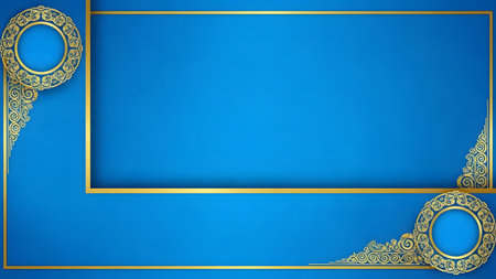 Elegant gold design on a blue background.