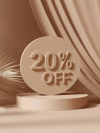 Light Brown '20% OFF' Promotional Sign on a Light Brown Background